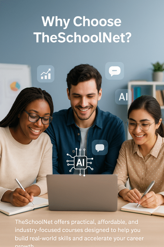 TheSchoolNet offers practical, affordable, and industry-focused courses designed to help you build real-world skills and accelerate your career growth. Whether you’re learning Digital Marketing, AI Skills, or Spoken English, every program is crafted to be job-ready, easy to follow, and aligned with today’s professional demands.